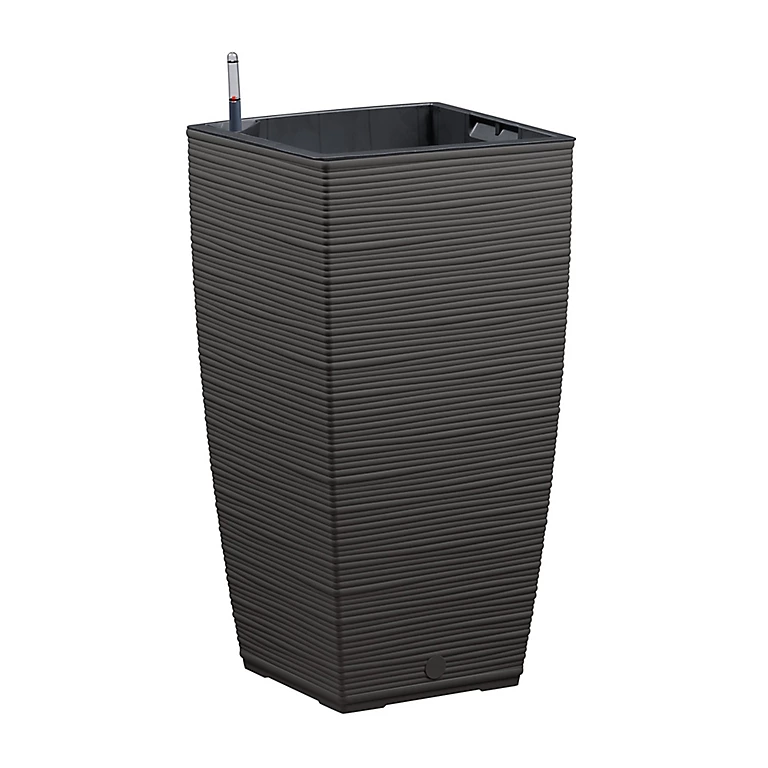 Le bac CASA COSY carré plus 3058 granite avec réserve d’eau sublimera vos plantations avec son effet cordage. Dimensions L 29,9 cm x l 29,9 cm h 57,4 cm. Profondeur insert amovible 21 cm. Contenance 12 litres de terre; réservoir d’eau de 2,8 litres. Indicateur de niveau d’eau intégré.Fabrication française.