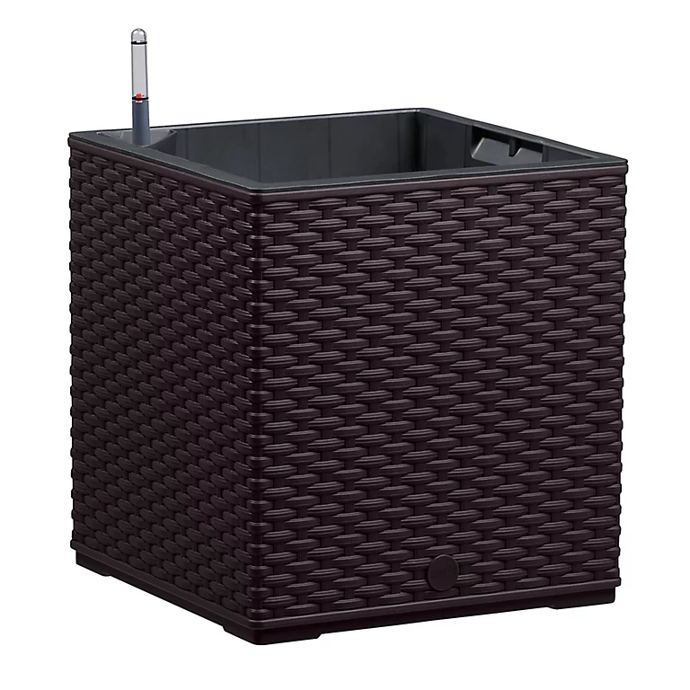 Le bac CASA MESH carré 30 moka avec réserve d’eau sublimera vos plantations avec son effet tréssé. Dimensions : L 29,9 cm x l 29,9 cm h 31,3 cm contenance 12 litres de terre; réservoir d’eau de 2,8 litres. Indicateur de niveau d’eau et insert amovible avec poignées intégrées. Fabrication française.