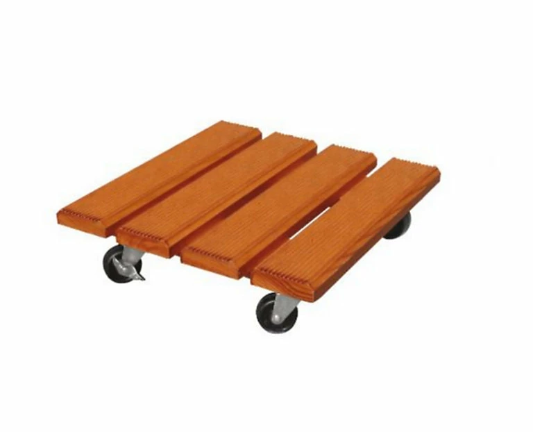 Support de pot en Pin des Landes. Traitement : double trempage par lasure fongicide. 4 fortes roulettes dont 2 à freins. Couleur : miel. Poids en charge : 120 kg. Lattes rainurées anti-dérapantes.